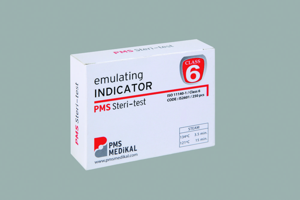 Der wasserbasierende und ungiftige chemische Indikator entsprechend ISO 11140-1 verfärbt sich bei ausreichender Dampfeinwirkung von blau nach schwarz. Die PMS-SteriTest Indikatorstreifen sind kostengünstig und können für eine noch sparsamere Nutzung in zwei separate Streifen geteilt werden.