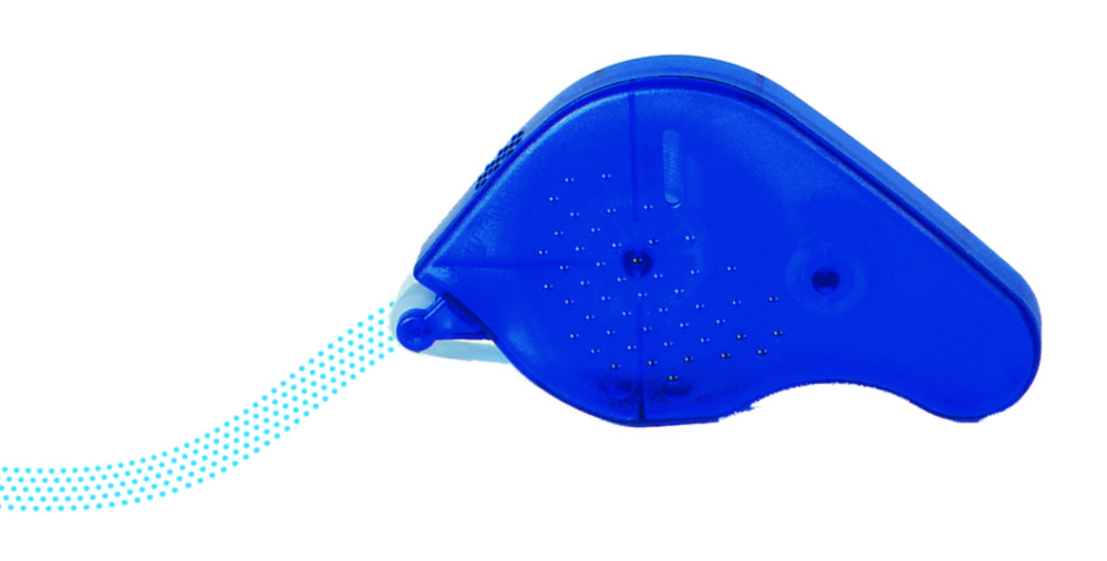 Selbstklebegummierung wird in beliebig langen Streifen "punktweise" durch einfaches Abrollen übertragen. Gummierung wieder ablösbar. Klebstoffreste können abgerubbelt werden. Der Spender ist nachfüllbar.
