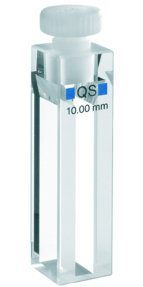 Produktinformationen "Küvetten für Fluoreszenzmessungen UV-Bereich | Typ: Ultra-Mikro, Beschreibung: PE Stopfen, 3 Fenster, Abmessungen außen (B x T x H) mm: 12,5 x 12,5 x 45"
