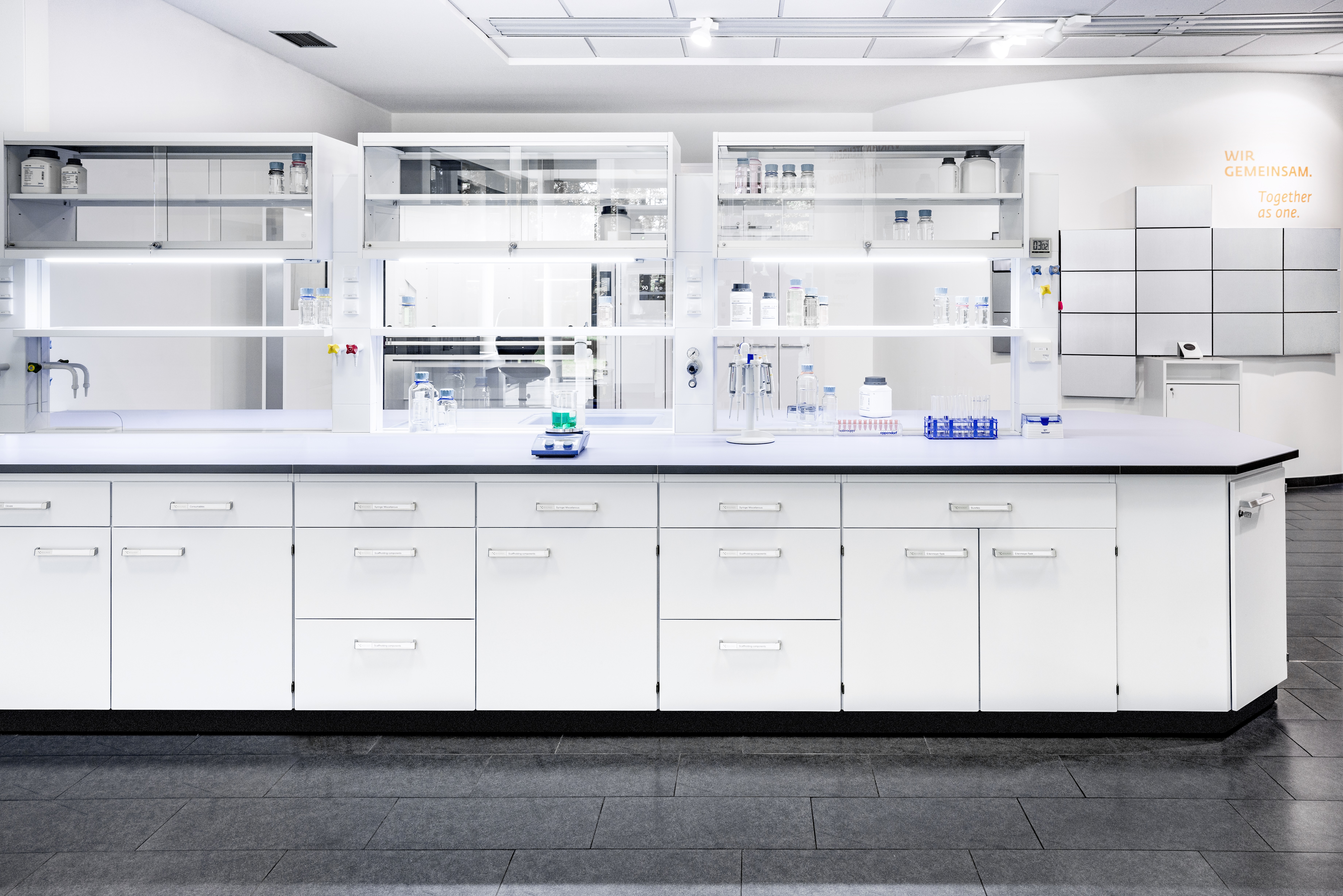 Köttermann bietet mit dem EXPLORIS® Labor optimale Möglichkeiten die Labormöbel flexibel an die Anwendungen im Labor anzupassen. Dieses lässt sich aus Unter-, Hoch-, Hänge- und Aufsatz-, Zellen- und Spezialschränken, sowie Tischplatten, Einzeltischen, Becken und Spülen zusammenstellen. Diese Komponenten können einfach kombiniert, ausgetauscht und nachgerüstet werden. Die Labormöbel bieten nicht nur einen großen Stauraum, sondern können durch eine große Menge an Zubehör, wie beispielsweise Einlegeböden, Schubkästen oder Gummimatten weitergehend an Ihre Anforderungen im Labor angepasst werden. Weitere Möglichkeiten der Individualisierung sind beispielsweise die Wahl unterschiedlicher Materialien von Labortischplatten oder Becken, sowie die Wahl verschiedener Tischgestelle.