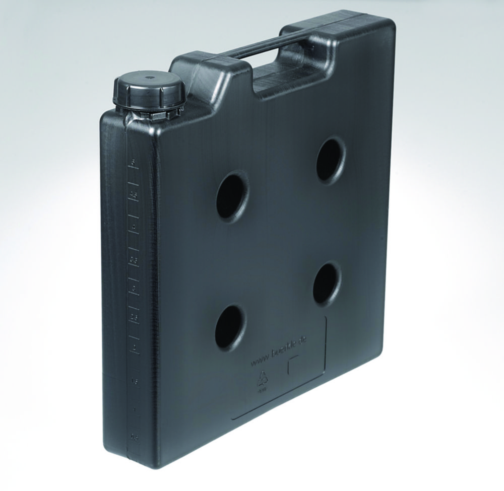 Produktinformationen "Raumsparkanister, HDPE, elektrisch leitfähig, ohne Gewindestutzen | Nennvolumen: 5000 ml, Abmessungen (BxTxH): 65 x 335 x 335 mm"