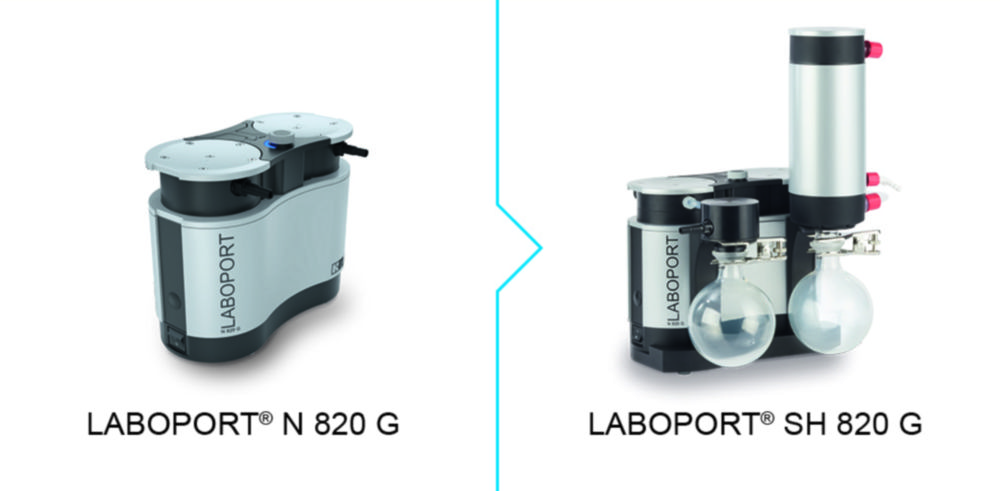Mit den maßgeschneiderten LABOPORT® Umbausätzen können Anwender die LABOPORT® Grundpumpen N 820 G und N 840 G direkt vor Ort zum SR-System mit Abscheider, zum SH-System mit Abscheider und Hochleistungskondensator oder zum SC-System mit Abscheider, Hochleistungskondensator und innovativem Vakuum-Controller erweitern.