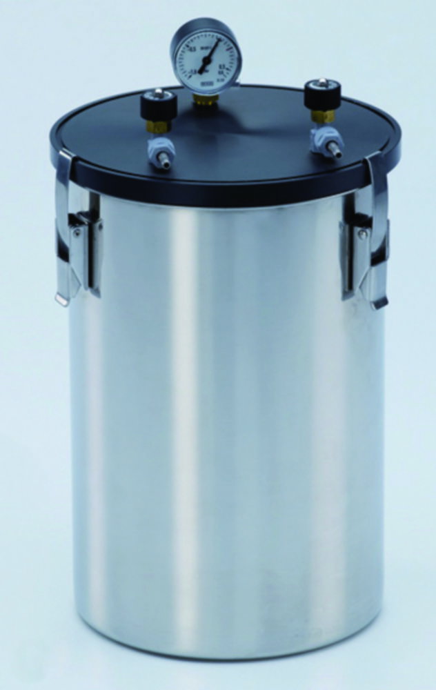 Produktinformationen "Anaerobengefäße aus Edelstahl, mit Manometer | Typ: large, Nennvolumen: 6 l, Abmessungen innen (ØxH): 175 x 260 mm"