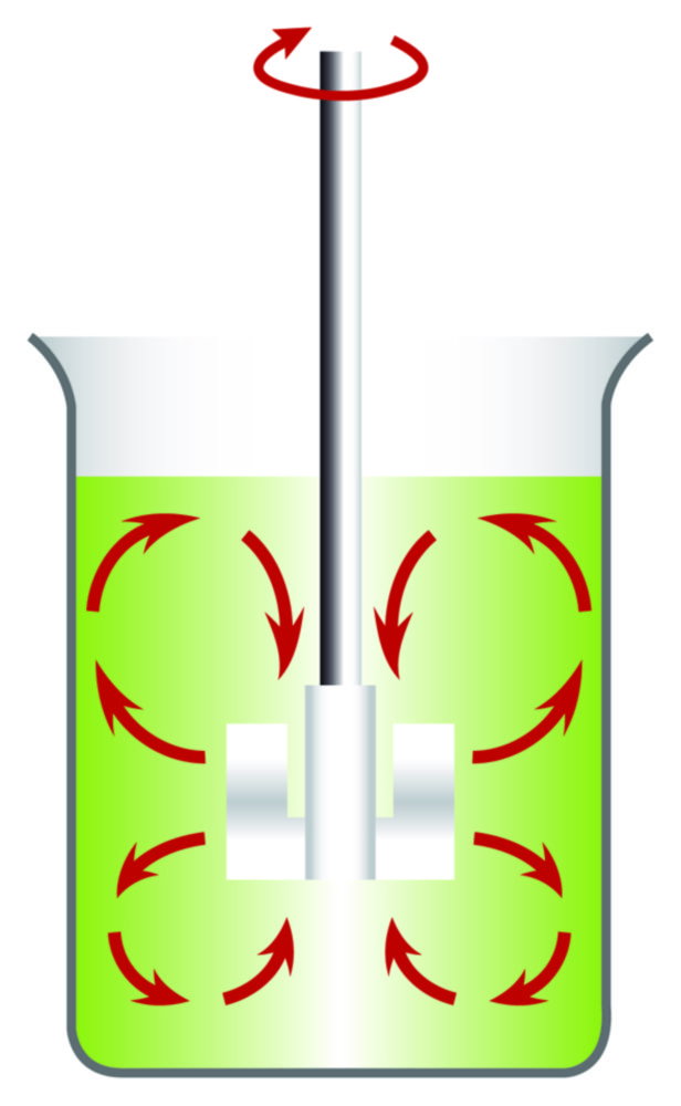 Der Ankerrührer erzeugt ein tangentiales Strömungsbild und es treten hohe Scherkräfte zwischen Gefäßwandung und Rührblätter auf. Dieser Rührer eignet sich besonders für mittel- bis hochviskose Fluide. Für einen optimalen Betrieb empfehlen sich niedrige Drehzahlen.