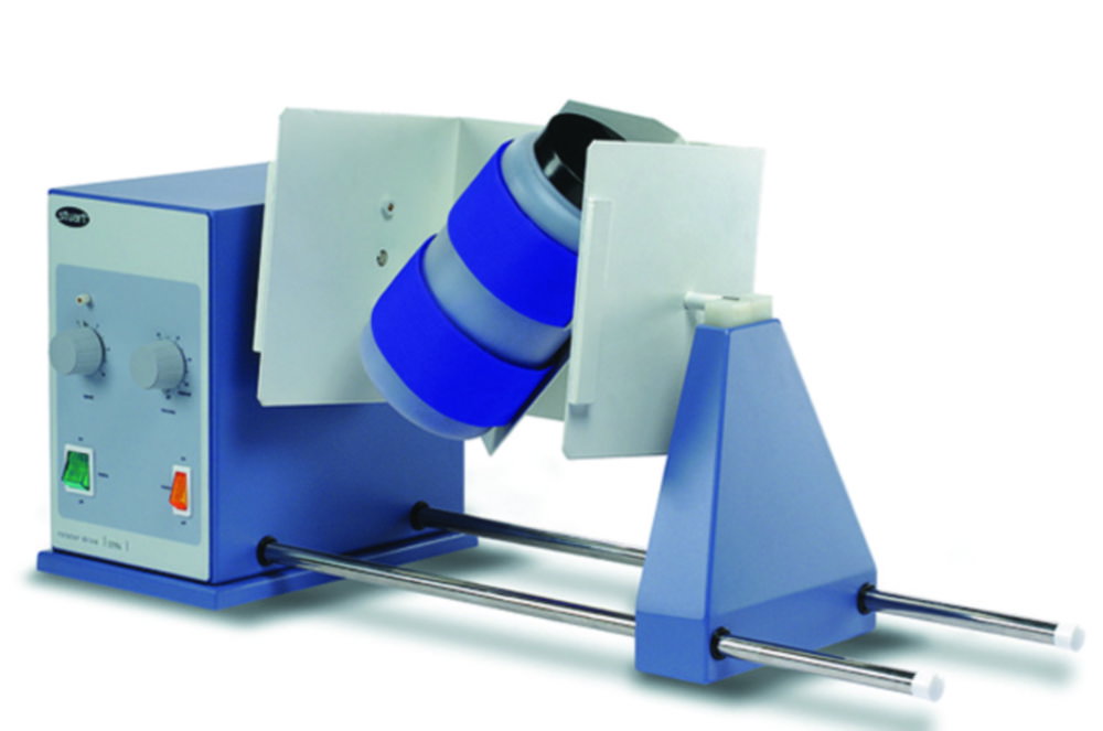 Die Platte des Drehmoduls ist von waagerechter Position bis zu einem Winkel von 45° justierbar und erlaubt so eine gleichzeitige Rotation der Probengefäße in normaler Rollbewegung und Überkopf (8er-Form). Geeignet für Extraktionen, Farbmischungen, pudrige und granulierte Proben. Der Probenbehälter wird durch einen adjustierbaren Velcro-Riemen fixiert.
