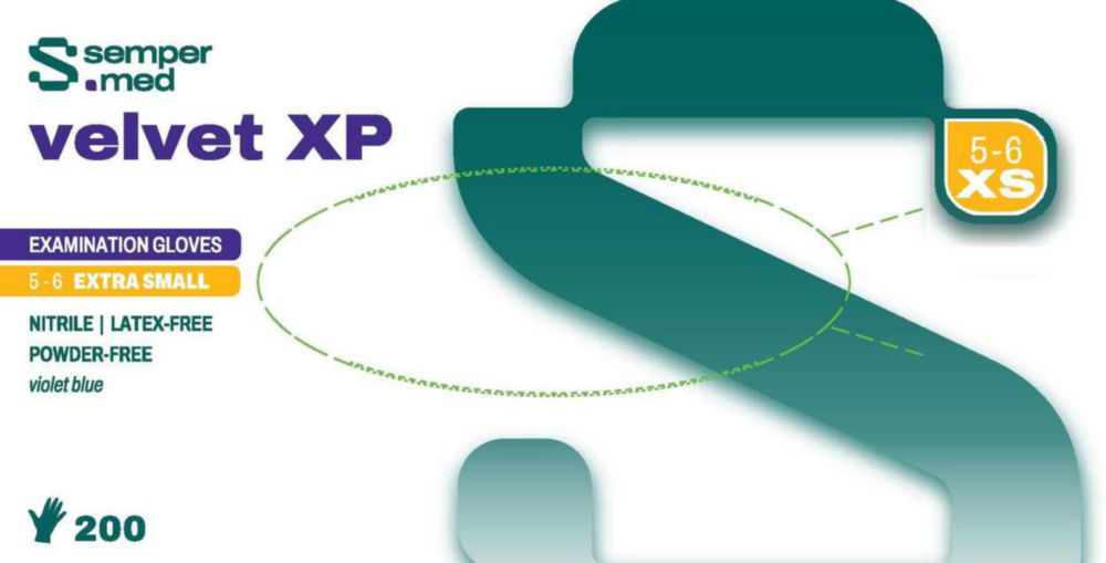 Produktinformationen "Einmalhandschuhe, Sempermed® velvet XP, Nitril | Handschuhgröße: XS, Länge: 240 mm, Dicke: 0.07 mm"