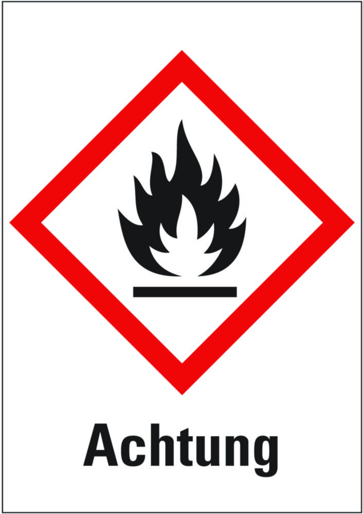 Produktinformationen "Gefahrensymbole nach GHS | Piktogrammnummer: GHS02, Symbol: Flamme, Signalwort: Achtung"