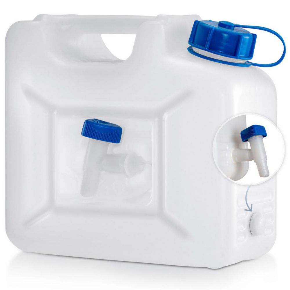Produktinformationen "Kanister mit integriertem Ablasshahn, HDPE | Nennvolumen: 10 l, Abmessungen (BxTxH): 350 x 165 x 310 mm, Ø öffnung: 65 mm"