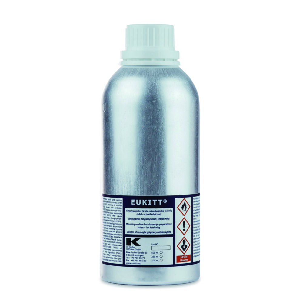 Die EUKITT® Eindeckmittel zeichnen sich durch zügiges Aushärten, glasklare Optik, geringe Fluoreszenz, günstigen Brechungsindex, gutes Fließvermögen und geringen Schwund aus. Die Präparate sind viele Jahre ohne Rissbildung und Verfärbung haltbar. EUKITT® Eindeckmittel sind farblos und verändern weder Form, Struktur noch Farbe des zu untersuchenden Materials. Keine Eigenfluoreszenz unter UV-Licht! Lieferung in stabilen Aluminiumflaschen.EUKITT®: Hochwertiger Klassiker der Eindeckmedien. Besonders für den Einsatz in Eindeckautomaten geeignet. EUKITT® ist unempfindlich gegen Wärme, Kälte (-17 °C), Feuchtigkeit, Tages- und UV-Licht und konserviert die Originalpräparate auf unbegrenzte Zeit. Trocknungszeit: 20 Minuten.EUKITT® neo Spezial: Schnelltrocknendes, Xylol-freies Eindeckmittel für die Mikroskopie. Kann direkt auf EtOH oder i-PrOH angewendet werden. Das Waschen mit Xylol kann entfallen. Moderner, angenehm riechender Rezepturansatz mit einem nachwachsenden Rohstoff als Lösemittel. Trocknungszeit: 15 Minuten.EUKITT® UV R: Ein Klick und fest. Das Eindeckmittel härtet innerhalb weniger Sekunden durch UV-Licht aus. Es werden nur 50 % der üblichen Menge zum Eindecken benötigt. EUKITT® UV R kann direkt auf EtOH bzw. i-PrOH eingedeckt werden und ist gesundheitlich völlig unbedenklich. Geeignet für alle Gewebetypen. Vernetzungszeit: 10 bis 30 Sekunden.