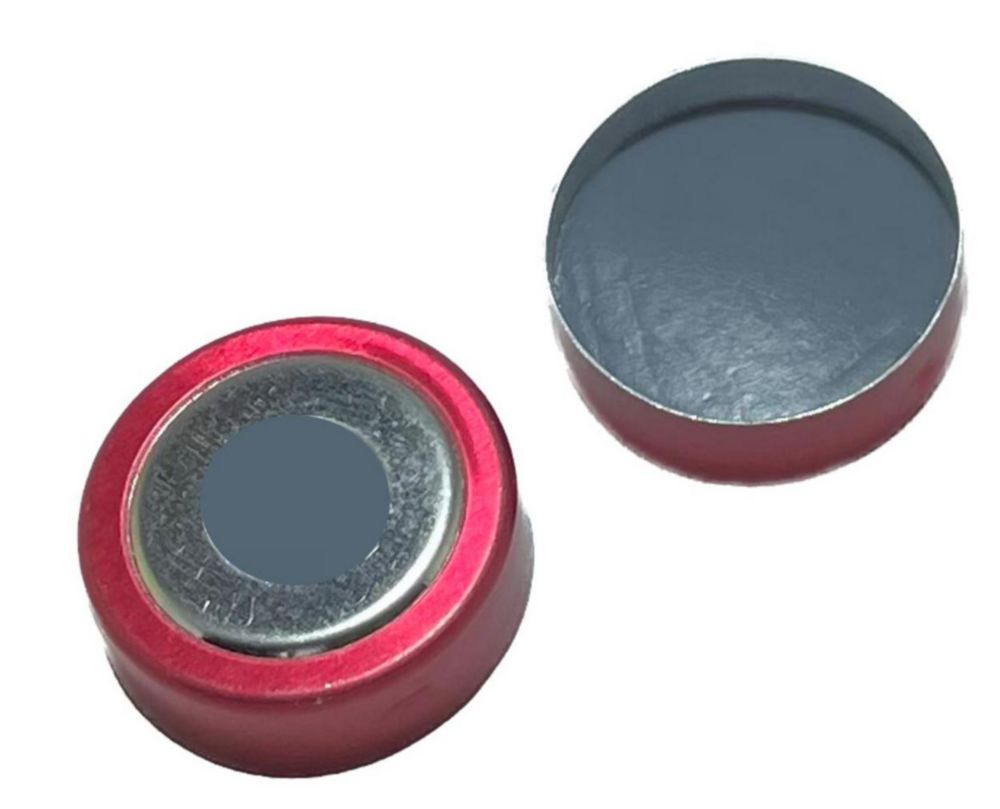 LLG-Bimetall Bördelkappen ND20, fertig montiert, magnetisch | Farbe: rot/silber, Mit Loch: Ja, Ø Loch: 8 mm