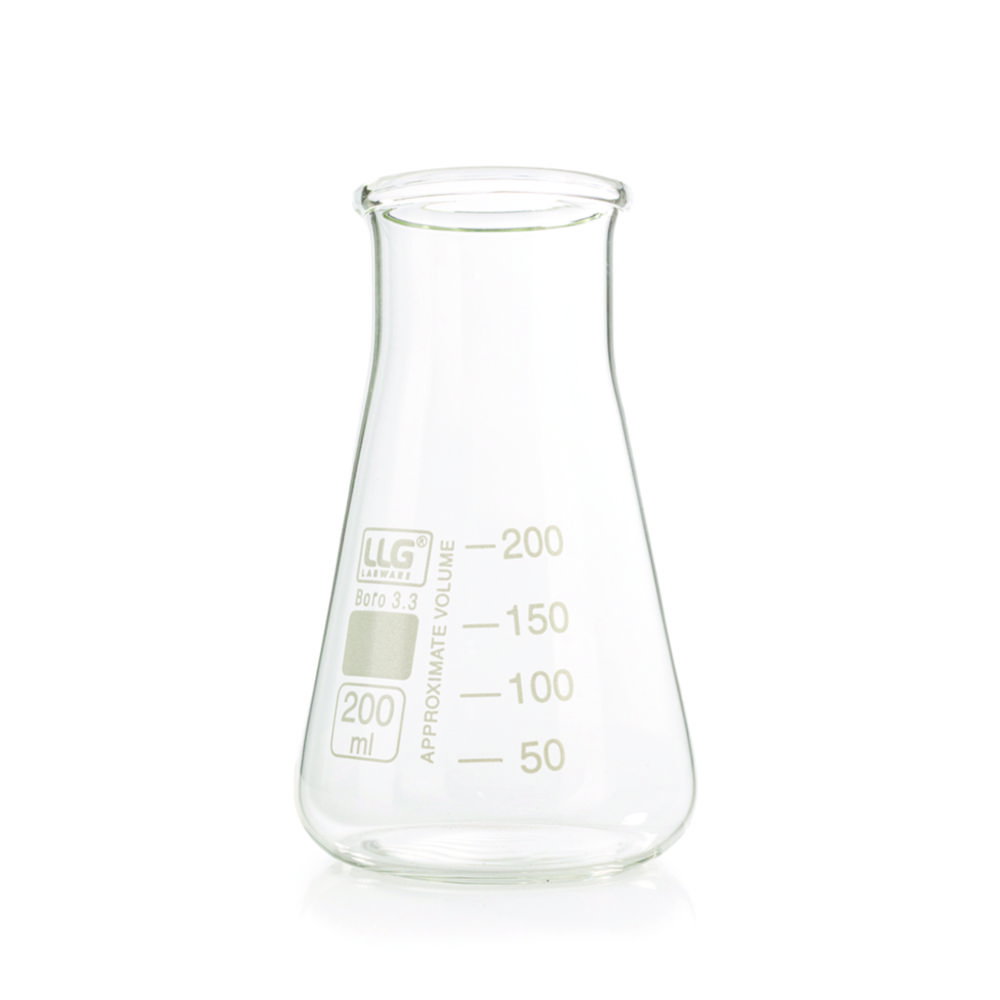 Produktinformationen "LLG-Erlenmeyerkolben, Weithals, Boro 3.3 | Nennvolumen: 200 ml, Ø Hals: 50 mm, Ø Boden: 79 mm"
