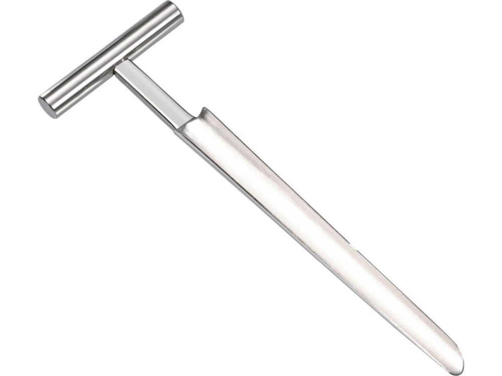 Konisch zulaufender Handbohrer, halbschalenförmig, mit scharfen Schneiden und massivem Handgriff. Ideal, um Proben zur Qualitätskontrolle aus weichen, pastösen Substanzen herauszustechen (Käse, Butter, Lehm, Ton, Seife, Wachs etc.).