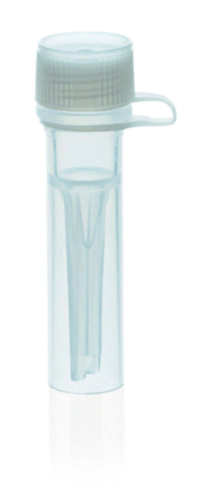 Produktinformationen "Reaktionsgefäße, PP, anhängender Schraubdeckel, PE, mit Dichtkonus | Nennvolumen: 0.5 ml, Abmessungen (ØxH): 13 x 44 mm"