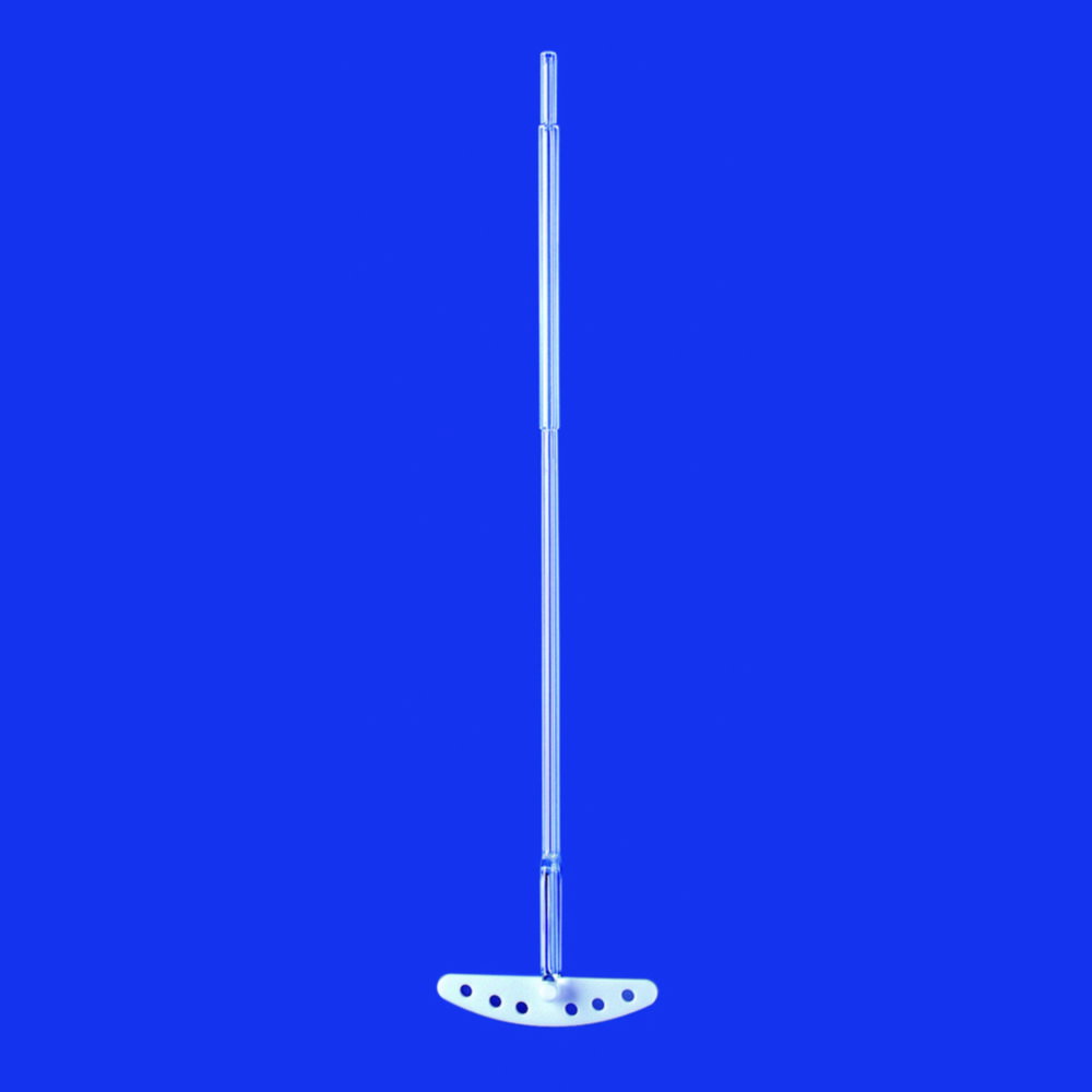 Aus kalibriertem Präzisionsglas, geschliffene und polierte Lauffläche, Wellen-Ø: 10 mm, Kupplungszapfen: Ø 8 x L 40 mm. Rührblatt PTFE, gelocht. Rührwelle hergestellt aus DURAN®-Rohr.