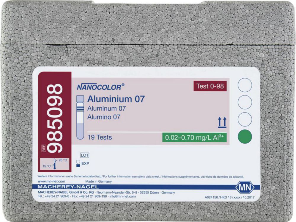 Produktinformationen "Rundküvettentests NANOCOLOR® Aluminium | Beschreibung: Aluminium 07, Messbereich: 0,02 - 0,70 mg/l Al3+"