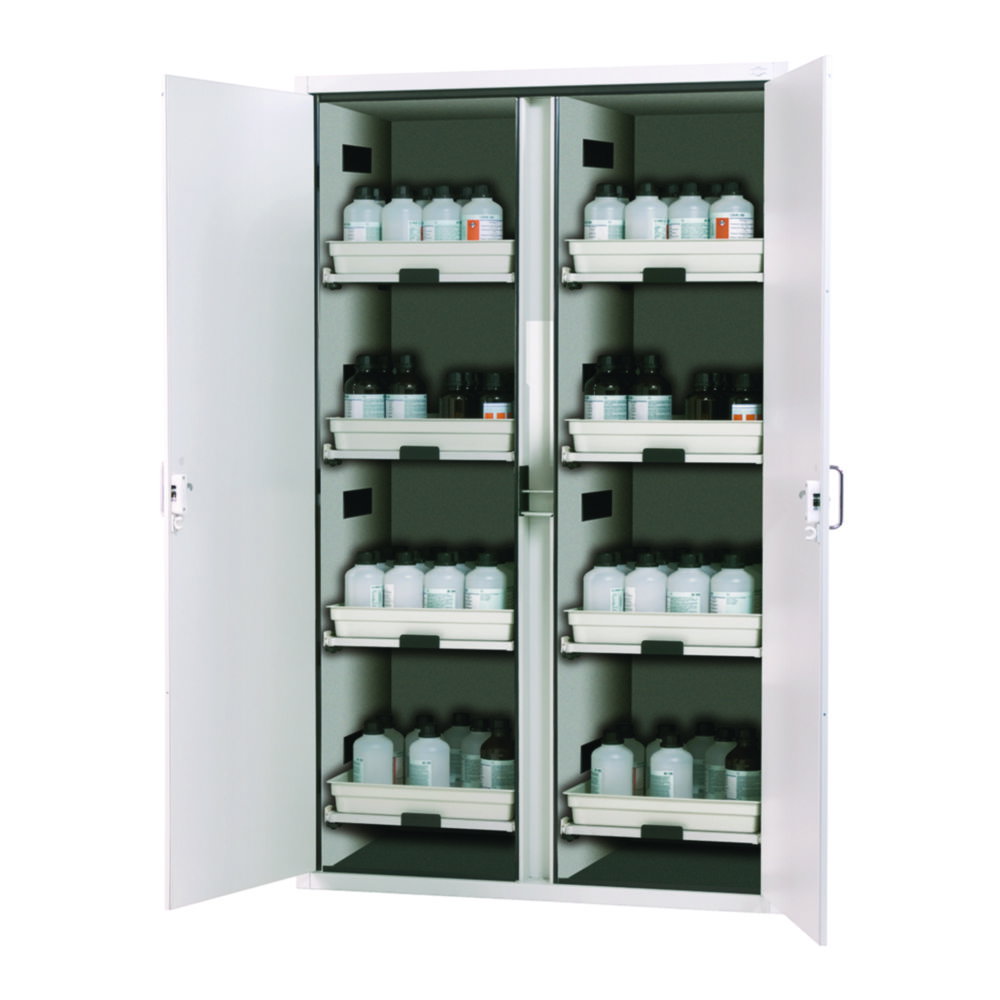 Säuren- und Laugenschränke SL-CLASSIC mit Flügeltüren, 12 Tablarauszüge