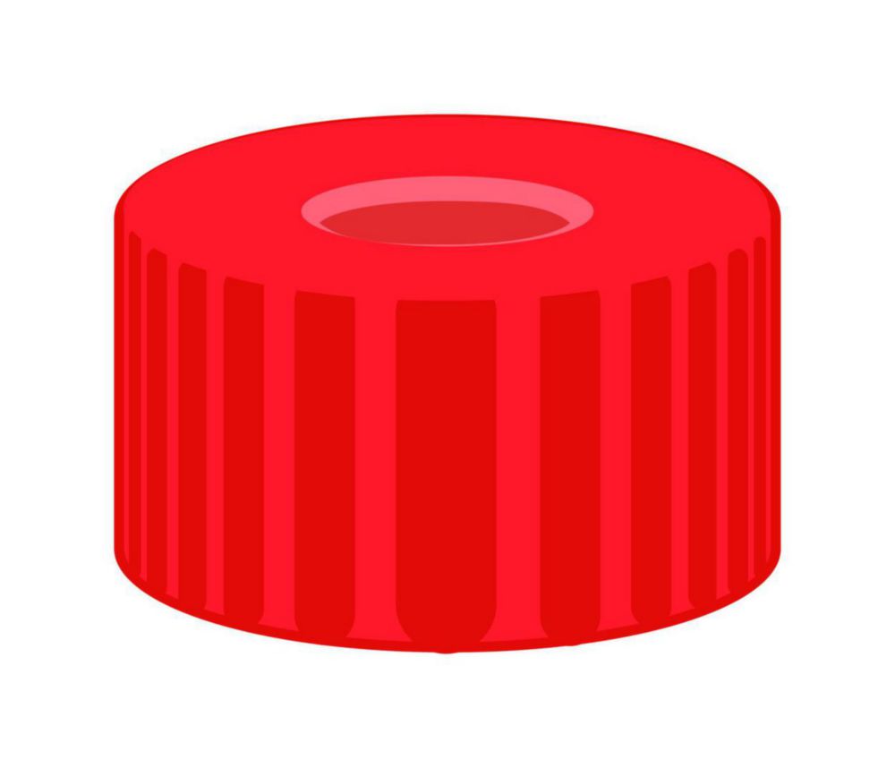 Produktinformationen "Schraubverschlüsse ND9, PP, fertig montiert | Farbe: rot, Mit Loch: Ja"