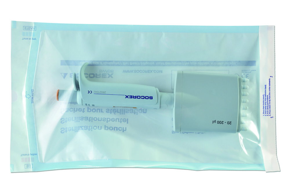 Passend für viele Laborinstrumente. Die Einwegbeutel dienen zur einfachen und effektiven Verpackung von Sterilisationsgut, dass durch die transparente PET / CPP Folie gut sichtbar ist. Mit dem selbstklebendem Band lassen sie sich sicher und schnell verschliessen.