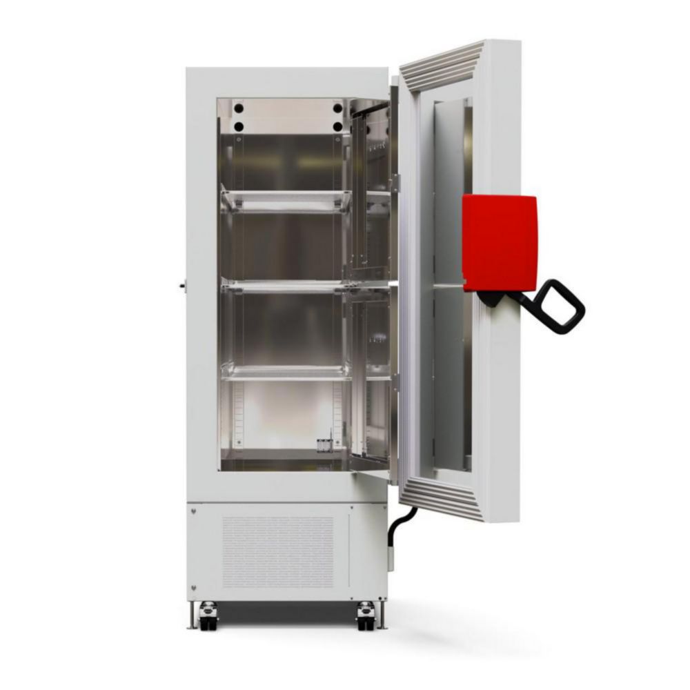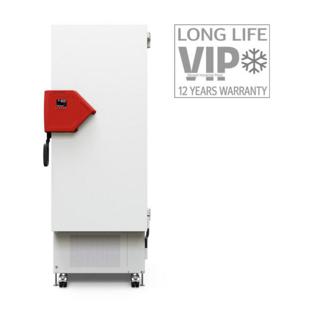 Die Ultratiefkühlschränke eignen sich für die stabile Langzeitlagerung von sensiblen Proben bei -90 °C und sind charakterisiert durch einen niedrigen Energieverbrauch, komfortabler Bedienung und individuellem Sicherheitskonzept.Leistungsstarke Kaskaden-KompressionskältemaschineUmweltfreundliche Kältemittel R-290 und R-170Wärmedämmung mit einzigartigen Long-life VIPs (Vakuumdämmplatten)Neuartiges Türdichtungs-Konzept vermindert EisbildungErgonomischer TürverschlusshebelInnenraum komplett aus EdelstahlAushängbare Innentüren aus Edelstahl3 flexibel positionierbare Einlegeböden aus EdelstahlPotenzialfreier Alarmkontakt für das Haus-AlarmsystemInterner Datenlogger, Messwerte im offenen Format über USB auslesbarEthernet-Schnittstelle2 Durchführungen Ø 28 mm, hintenUltratiefkühlschrank mit Wasserkühlung