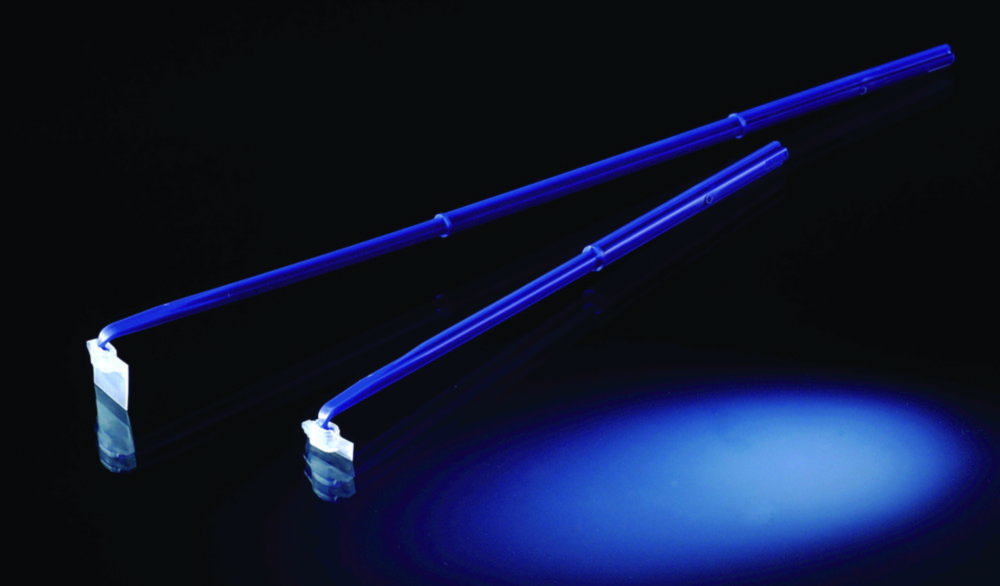 Verfügbar in zwei Größen mit flexiblem, schwenkbarem Schaberblatt. Pyrogenfrei. Steril.